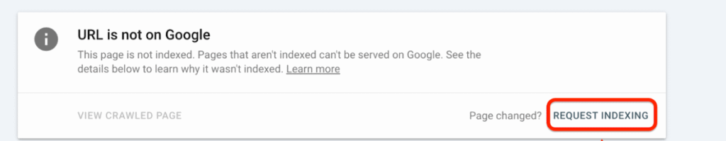Click Request Indexing to notify Google of the changes. This step prompts Google to re-crawl the page and update its status accordingly.