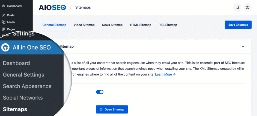 - Navigate to the Sitemaps section in the All in One SEO menu in your WordPress dashboard.
