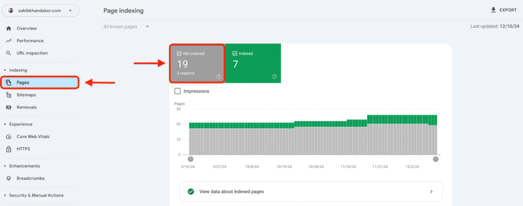 The Index Status feature enables you to see Google Search Console errors directly within your WordPress dashboard. To do this, follow these steps: