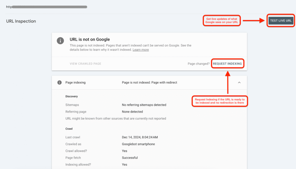 After applying the fixes, log in to your Google Search Console and use the URL Inspection Tool to test the affected URL.