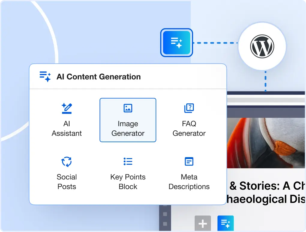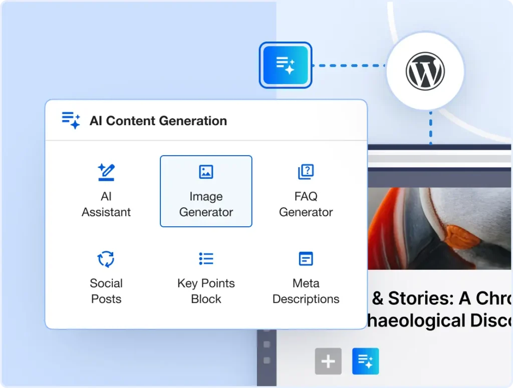 - AI Content – Generate blogs, images, FAQs, & more with AI