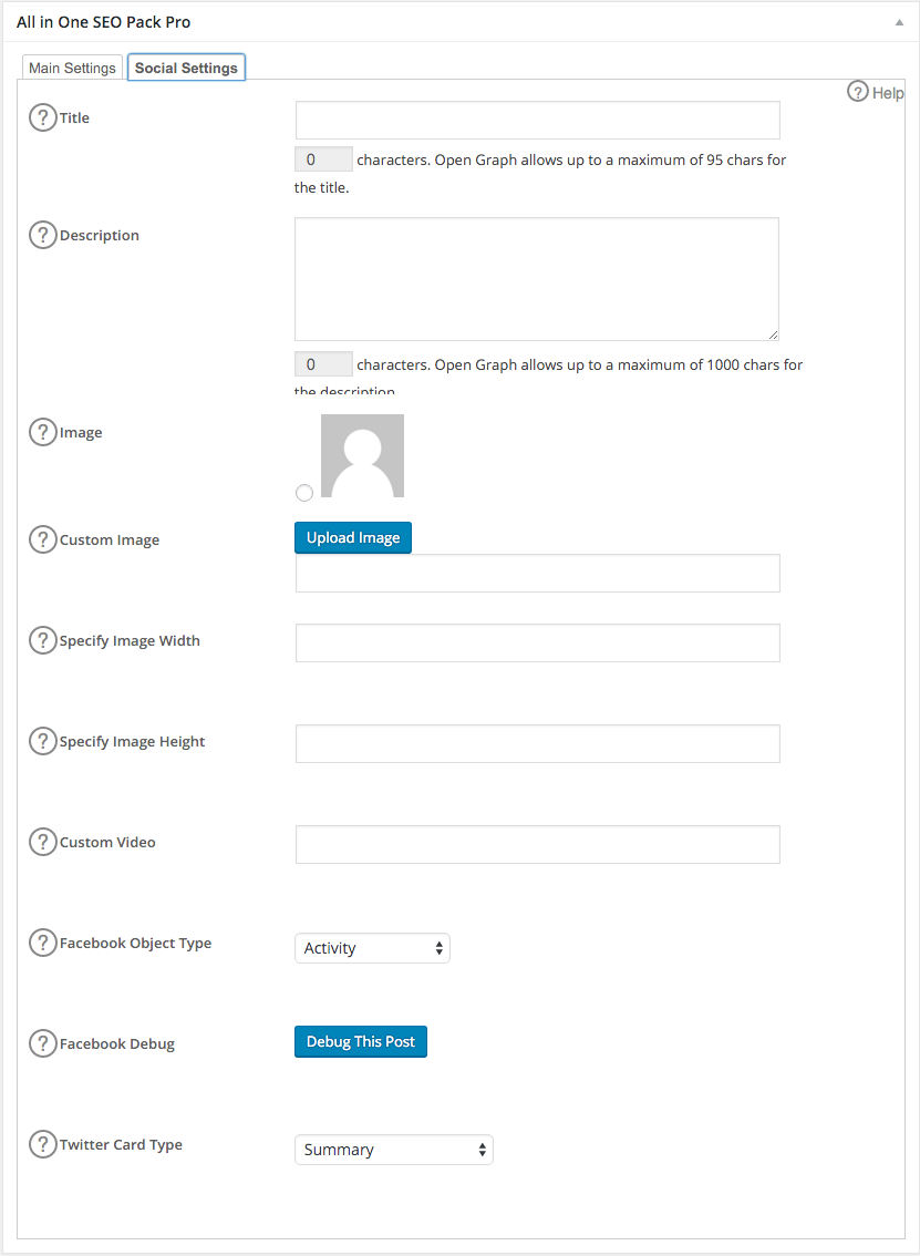 You can enable Social Meta in All in One SEO Pack by going to All in One SEO > Feature Manager. We've created a Beginners Guide to help you through the steps needed to configure the Social Meta module – Beginners Guide to Social Meta.